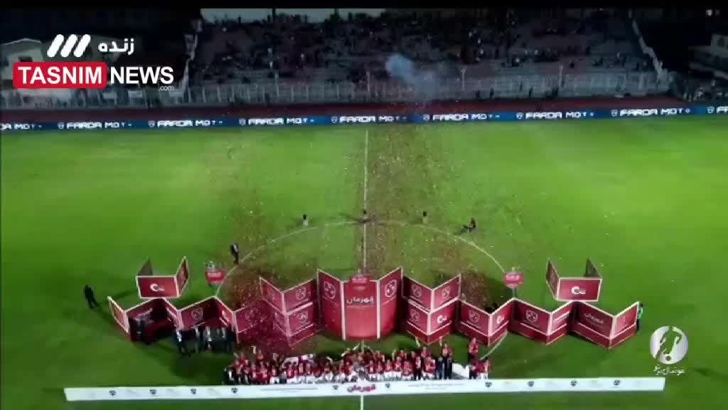 لحظه بالا بردن جام قهرمانی لیگ برتر توسط امید عالیشاه و جشن قهرمانی بازیکنان پرسپولیس را ببینید