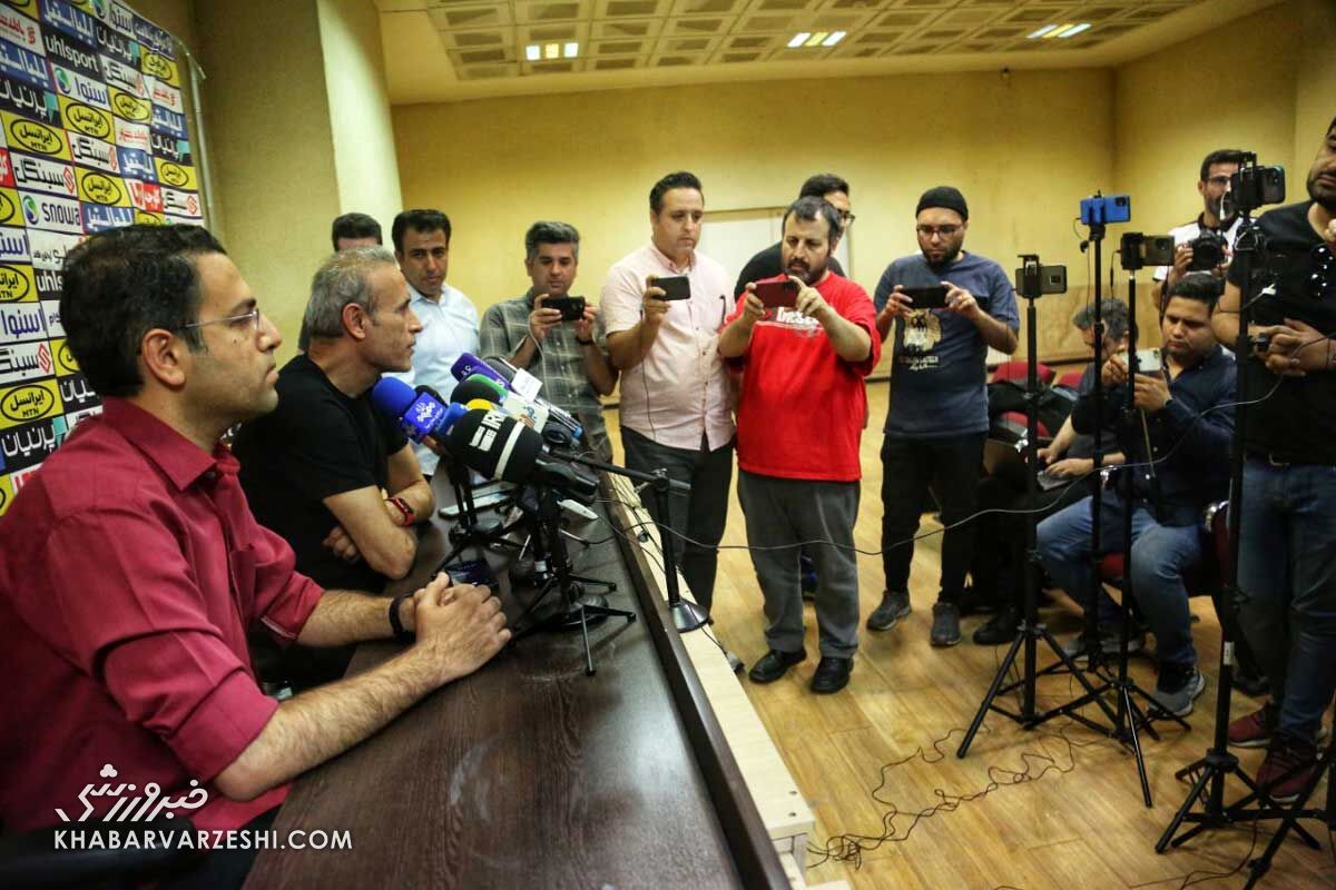 خبرورزشی: نشست خبری پیش از مسابقه سرمربیان دو تیم استقلال و پرسپولیس در فینال جام حذفی که در سالن روابط عمومی سازمان لیگ فوتبال برگزار میشود.