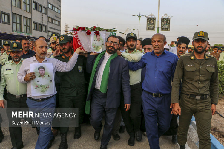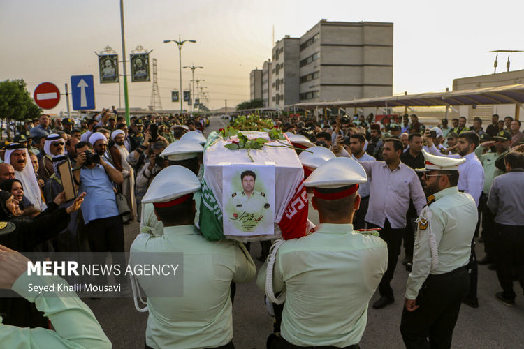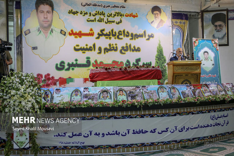 مراسم وداع با پیکر شهید محمد قنبری با حضور مردم، خانواده شهید قنبری، علی اکبر حسینی محراب استاندار خوزستان، سردار سیدمحمود میرفیضی فرمانده انتظامی خوزستان، سردار حسن شاهوارپور فرمانده سپاه حضرت ولیعصر (عج) خوزستان و دیگر مسئولان استانی و بزرگان اقوام و طوایف استان در ستاد فرماندهی انتظامی خوزستان برگزار شد.