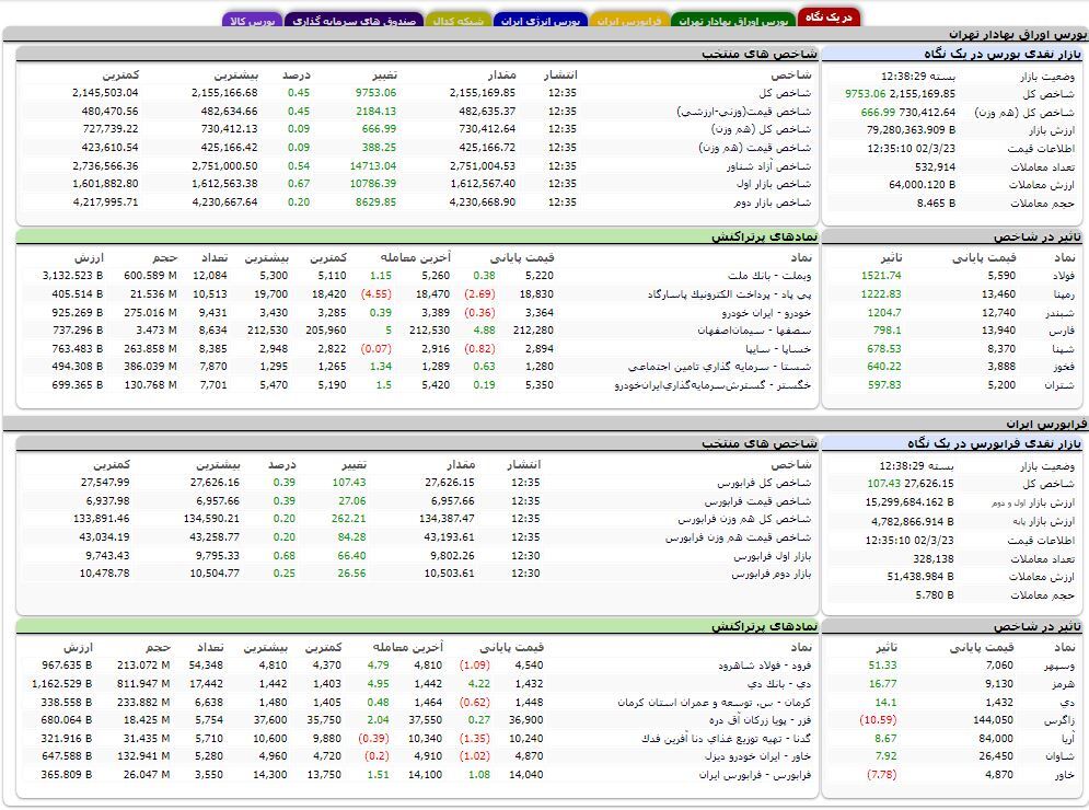 نمادهای فولاد، رمپنا، شبندر، فارس، شپنا، فخوز و شتران از نمادهای تاثیر گذار مثبت بر شاخص کل بورس بودند. اما نماد با تاثیر منفی از افزایش بیشتر شاخص کل ممانعت کرد.