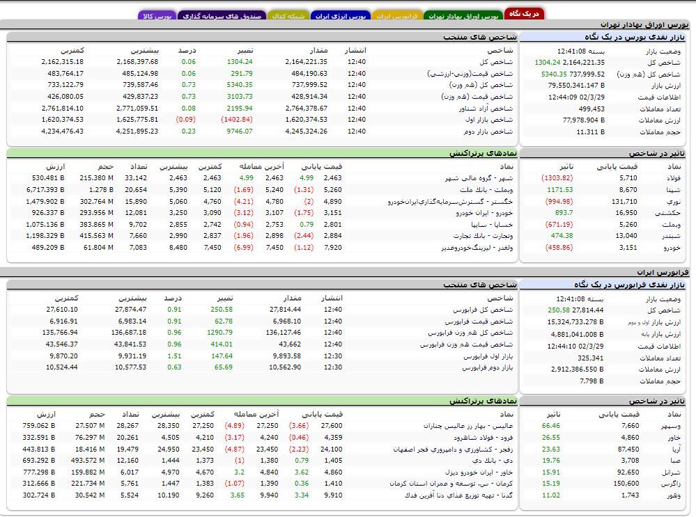 نمادهای شپنا، حکشتی و شبندر از نمادهای تاثیر گذار مثبت بر شاخص کل بورس بودند. اما نماد فولاد، نوری، وبملت و خودرو با تاثیر منفی از افزایش بیشتر شاخص کل ممانعت کرد.