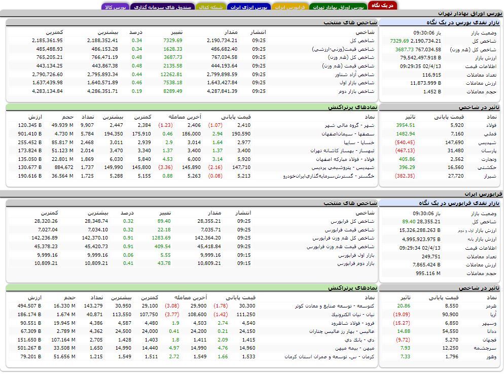 نمادهای فولاد، فملی، وتجارت و حکشتی بیشترین تاثیر مثبت را بر شاخص کل بورس دارند. اما نمادهای شپدیس، پارسان و شیراز هم با تاثیر منفی از افزایش بیشتر شاخص کل ممانعت کردند.