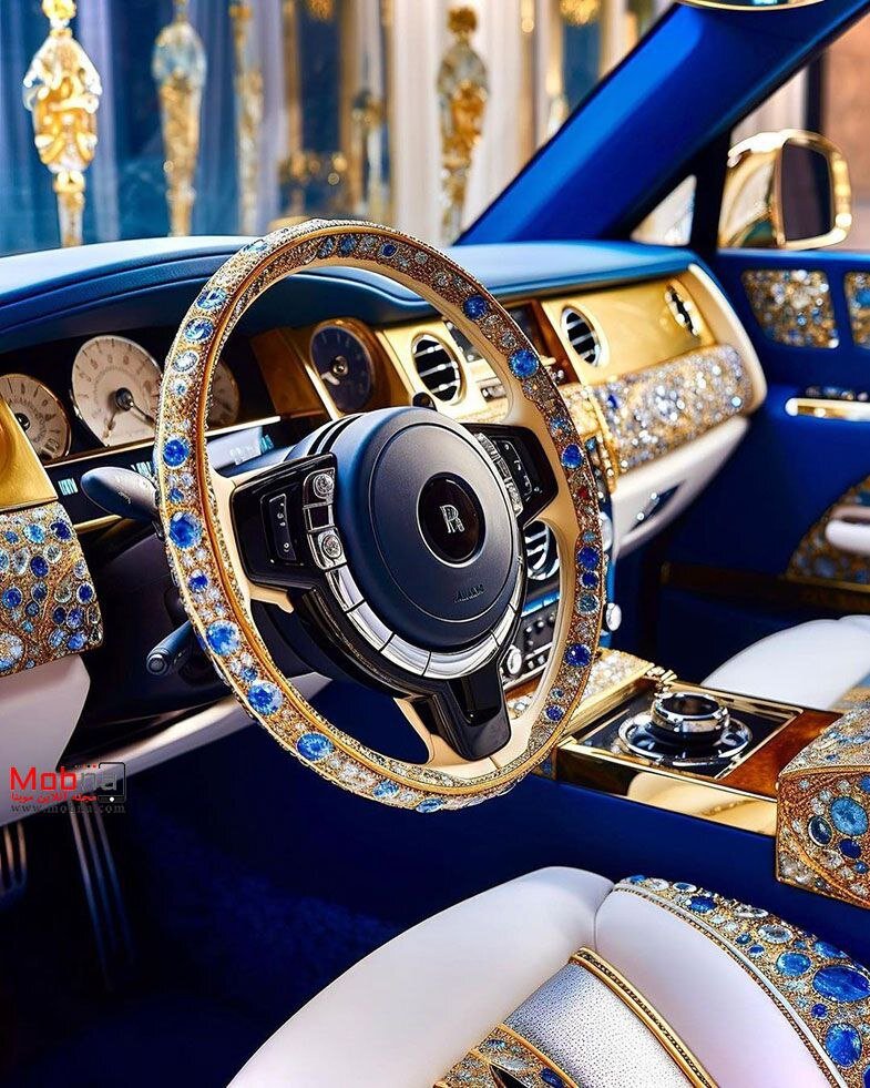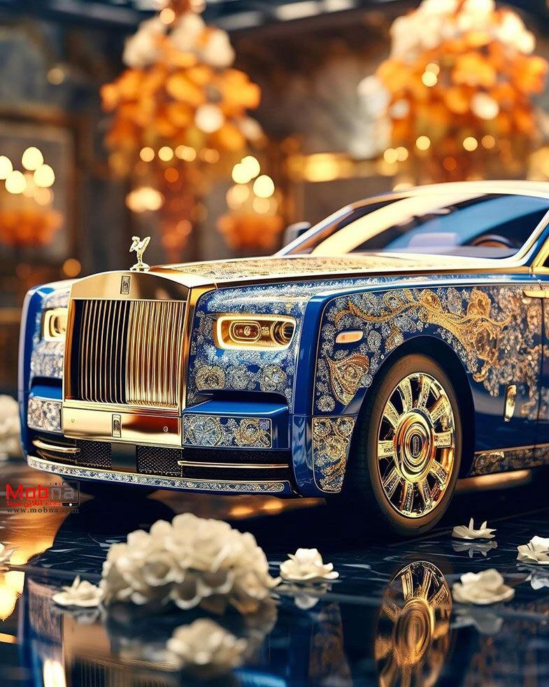 رولز رویس خودروی سلطنتی؛ ساخته شده از طلا، یاقوت کبود و کریستال توسط هوش مصنوعی رندر شده و از رولز رویس یک نسخه فوق مجلل ارائه کرده است.