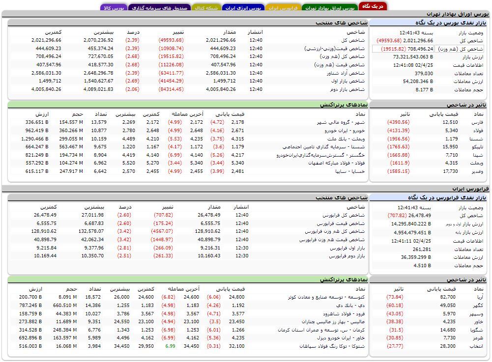 نمادهای فارس، فولاد، شستا، تاپیکو، شپنا، وبملت و وغدیر از نمادهای تاثیر گذار منفی بر شاخص کل بورس بودند.