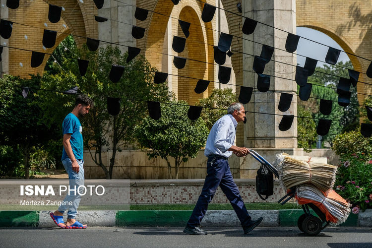 در آستانه ماه محرم، عزاداران امام حسین (ع) معابر و خیابانهای شهر تهران را با پرچمها و پارچههای مشکی سیاهپوش کردند. خرید و فروش پرچم مشکی و المانهای محرم در بازار تهران نشان از آغاز ماه محرم دارد.