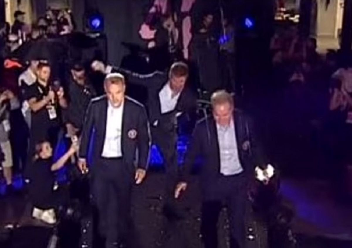 احتمالا همین موضوع باعث شد که بکام نتواند در زمان ورودش به صحنه تعادلش را حفظ کند و در حالی که کنار سایر مالکان این باشگاه قدم میزد، برای یک لحظه پایش لیز خورد و نزدیک بود به زمین بیفتد و تمامی دوربینها هم این صحنه را ضبط کردند.