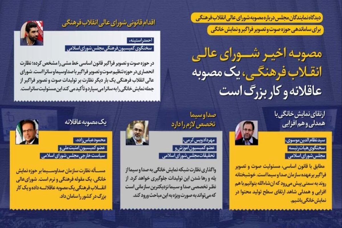 اکثریت نمایندگان مجلس از مصوبه اخیر شورای عالی انقلاب فرهنگی حمایت کرده و این مصوبه را یک اقدام عاقلانه و گامی مهم برای ارتقای صنعت نمایش خانگی در کشور دانستهاند.