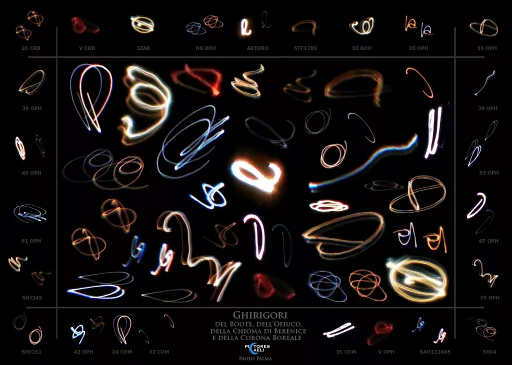 این خطوط رنگارنگ، Ghirigori نام دارد و این موزاییک هنری از ستارگانی که در صورتهای فلکی شمالی گاوران، تاج شمالی، مارافسای و گیسو قرار دارند، ایجاد شده است.