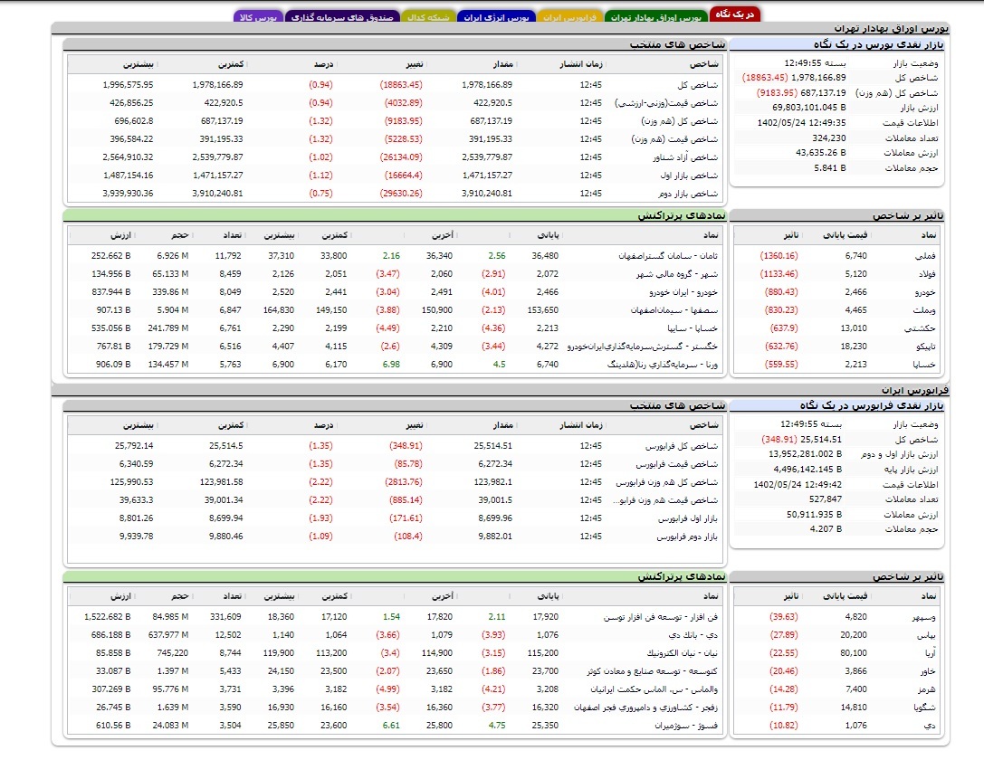 در بازار فرابورس نیز شاخص کل با با کاهش ۳۴۸ واحدی در ارتفاع ۲۵ هزار و ۵۱۴ واحد قرار گرفت.