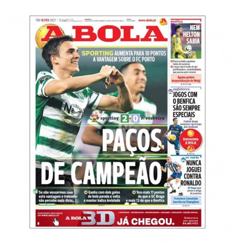 به گزارش ورزش سه ، در ادامه مسابقات هفته نوزدهم لیگ فوتبال پرتغال شب گذشته تیم اسپورتینگ لیسبون موفق شد با دو گل تیم پاسوس دفریرا را شکست بدهد. اسپورتینگ با این برد امتیاز خود را به عدد ۵۱ افزایش داد و اختلافش را با سایر مدعیان قهرمانی بیشتر کرد.