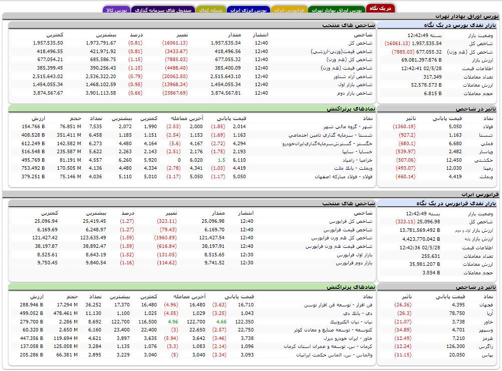 شاخص کل فرابورس نیز امروز با ۳۲۳ واحد کاهش به عدد ۲۵ هزار و ۹۶ واحد رسید.