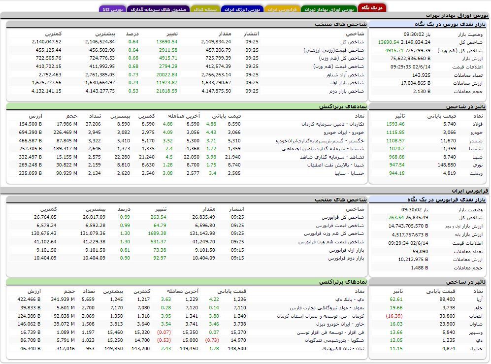 نمادهای فولاد، خودرو، شبندر، شستا، شپنا، نوری و وبملت بیشترین تاثیر مثبت را بر شاخص کل بورس دارند.