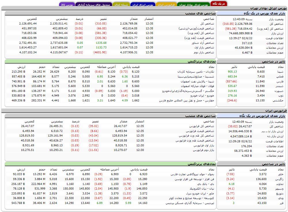 نمادهای بمولد، فن افزار، دی، نیان، خاور و کتوسعه از نمادهای پرتراکنش با تاثیر منفی و نماد ثپردیس از نمادهای با تاثیر مثبت بر بازار فرابورس امروز بودند.