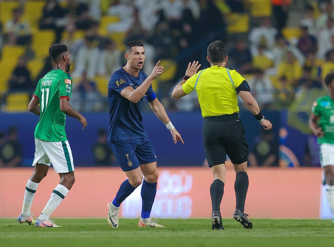 پیرو مازا که در ابتدا تلاش کرد با رونالدو مدارا کند، در نهایت کارت زرد را از جیب خارج کرد و کاپیتان النصر را جریمه کرد. حتی این موضوع نیز باعث توقف اعتراضات کریستیانو نشد و او همچنان با حرکات دست و غرولند زیر لب، از تصمیم داور مسابقه شاکی بود.