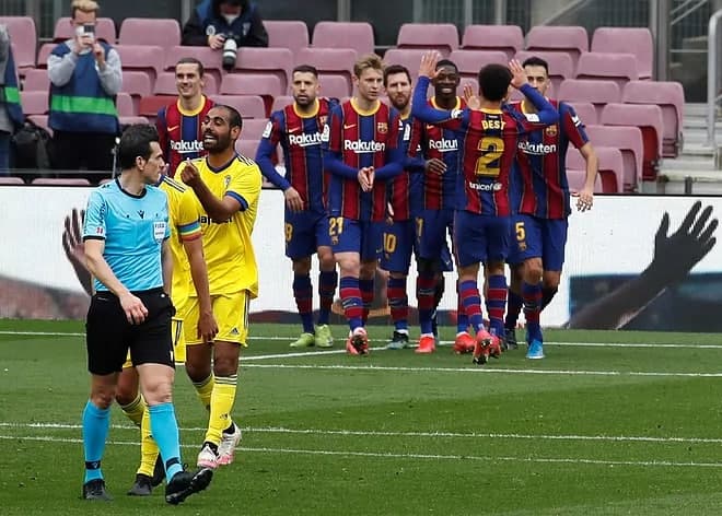 به گزارش "ورزش سه"، نیمه اول دیدار بارسلونا و کادیز در نوکمپ با برتری 1-0 ابی اناری ها به اتمام رسید. تک گل بازی را لیونل مسی دقیقه 31 و از روی نقطه پنالتی به ثمر رساند. پنالتی را پدری گونزالس گرفته بود و مسی به راحتی تبدیل به گل کرد.