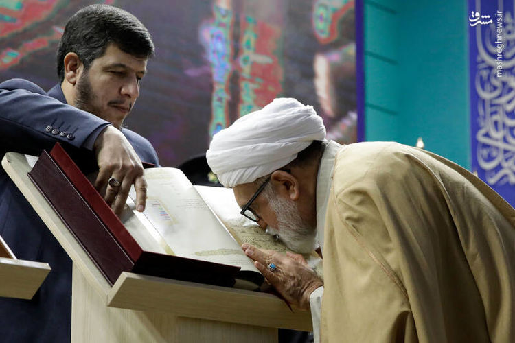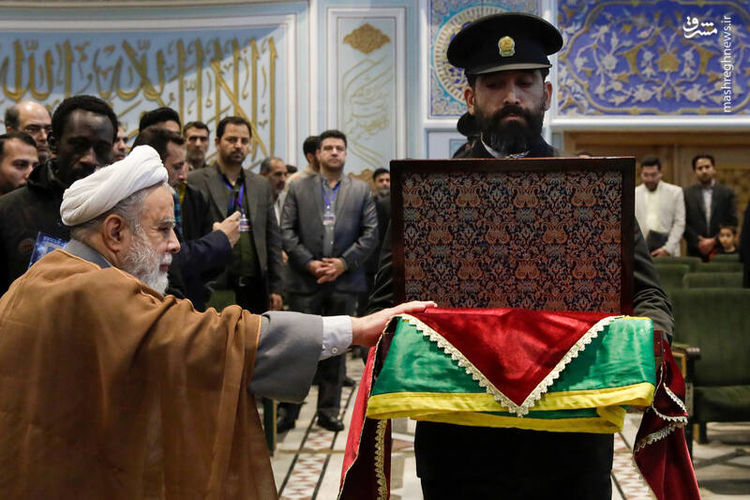 عکس/ آیین رونمایی از کهنترین نسخه کامل قرآنی جهان در حرم رضوی