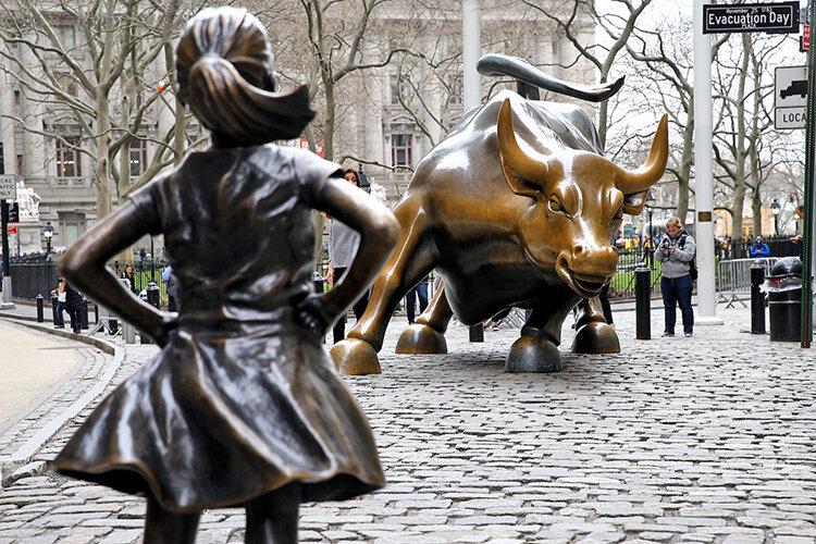 دیمودیکا همراه ۴۰ نفر دیگر مجسمه برنزی را به ابعاد تقریبی ۳.۵ در پنج متر ساعت یک بامداد روز اول دسامبر ۱۹۸۹ دزدکی و غیرقانونی به جایی که همین امروز هم آنجا است، انتقال داد. طبیعی بود صبح وقتی چشم ماموران دولتی و مردم به این تندیس غولپیکر افتاد، شگفتزده شدند. از آنجا که برای انتقال و نصب تندیس گاو در منهتن با کسی هماهنگ نشده بود، مسئولان شهری تصمیم گرفتند آن را جابهجا کنند اما واکنشهای گسترده و اعتراضی مردم باعث شد گاو خشمگین چند روز بعد سر جایش برگردد و تا امروز هم از آنجا تکان نخورده است.