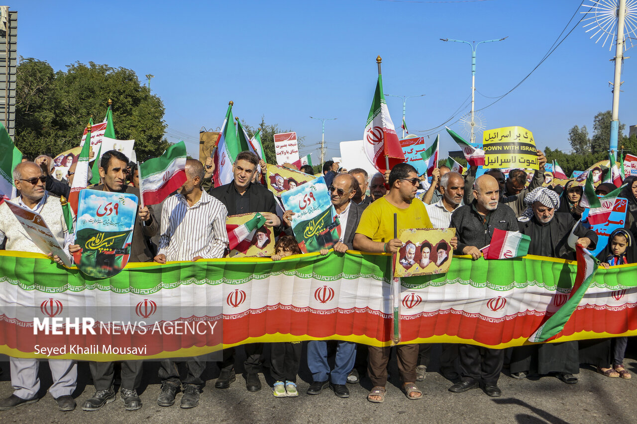 مردم اهواز امروز ۱۵ دی ماه بعد از پایان نماز جمعه با انجام راهپیمایی انفجار تروریستی کرمان را محکوم کردند.