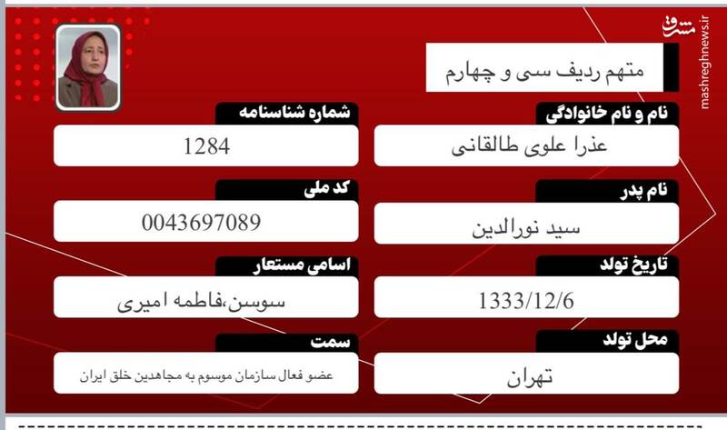 خاطر نشان میشود مسئولیتهای پیشین عذرا علوی، عمدتاً مرتبط با مسائل امنیتی گروهک بوده است.