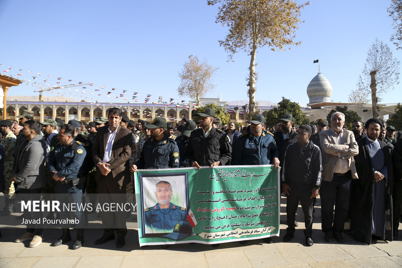 پیکر شهید بازیار امروز با حضور مردم ولایتمدار شهر شیراز و مسؤولان استانی در صحن حرم مطهر حضرت احمد بن موسی شاهچراغ (علیهالسلام) تشییع شد.