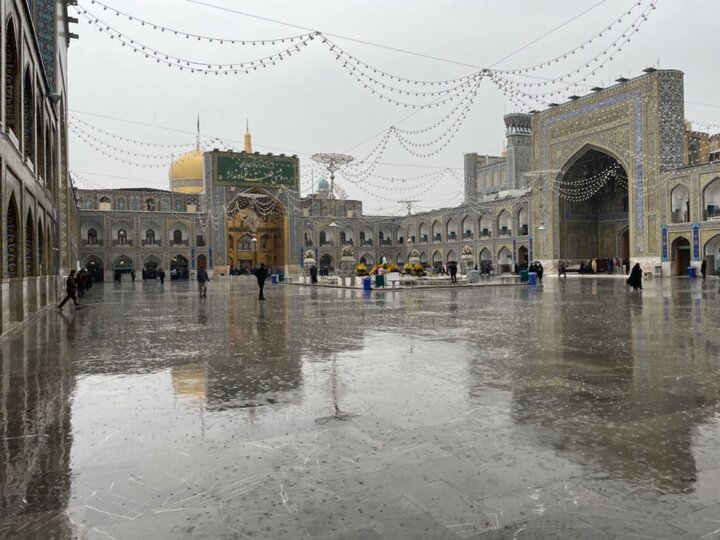 مشهد- بارش پراکنده برف که از دقایقی قبل آغاز شده جلوهای زیبا به حرم مطهر رضوی بخشید و باعث خوشحالی مردم مشهد و زائران امام رئوف شده است.