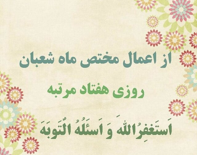 همچنین در روایت آمده است «انّ من استغفر فی شعبان کلّ یوم سبعین مرّة کان کمن استغفر فی غیره من الشهور سبعین ألف مرّة، قیل: فکیف أقول؟ قال: قل: استغفر اللّه و أسأله التوبة»، کسی که در ماه شعبان هر روز هفتاد بار استغفار کند مانند کسی هست که در ماه های دیگر به تعداد هفتاد هزار بار استغفار میکند.