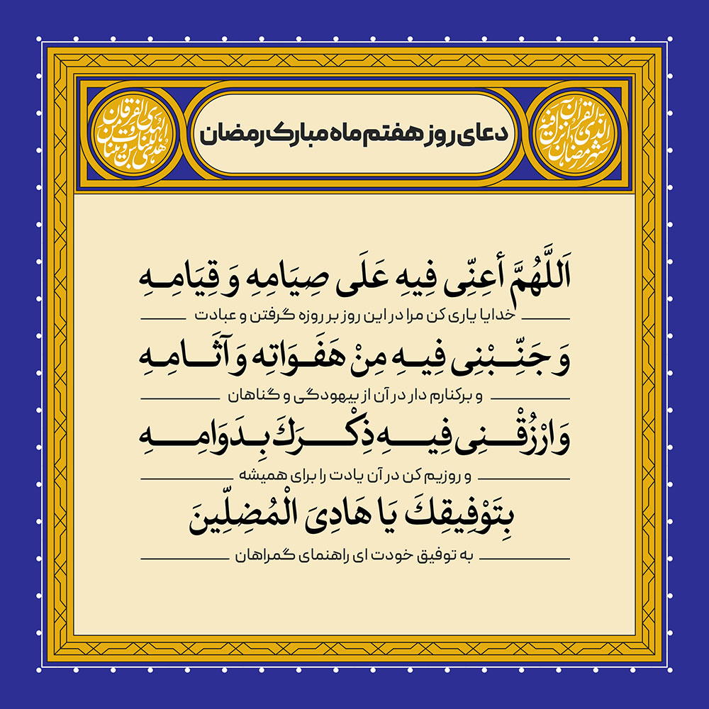 دعای هفتمین روز ماه مبارک رمضان مصادف با چهارشنبه ۹ فروردین به همراه اوقات شرعی تقدیم مخاطبان میشود.