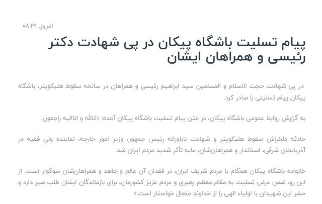 شهادت ریاست محترم جمهوری اسلامی ایران و همراهان ایشان در حادثه سقوط بالگرد را به ملت ایران تسلیت میگوییم.