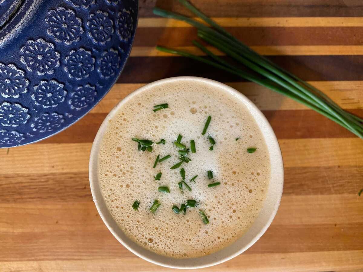 برای درست کردن کافهلاته با پیازچه، ابتدا باید مقداری پیازچه سبز را در ظرفی خرد و له کنید، سپس به آن یخ، شیر و قهوه بیفزایید و تمام مواد را با هم ترکیب کنید. در پایان هم روی کافهلاتهتان را با مقدار زیادی پیازچه خردشده بپوشانید.