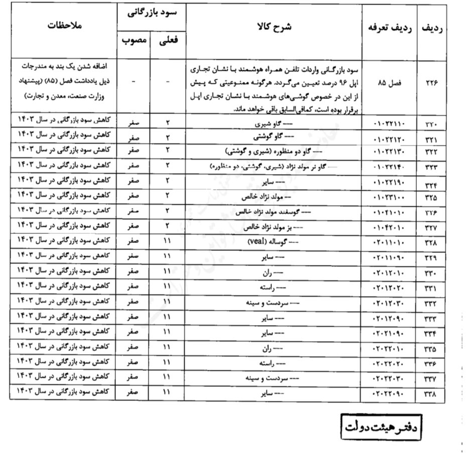 همچنین سود بازرگانی گوشی برند اپل به صورت تجاری ۹۶ درصد و مسافری (با احتساب حقوق گمرکی ۴ درصدی) ۹۶ درصد تعیین شد.