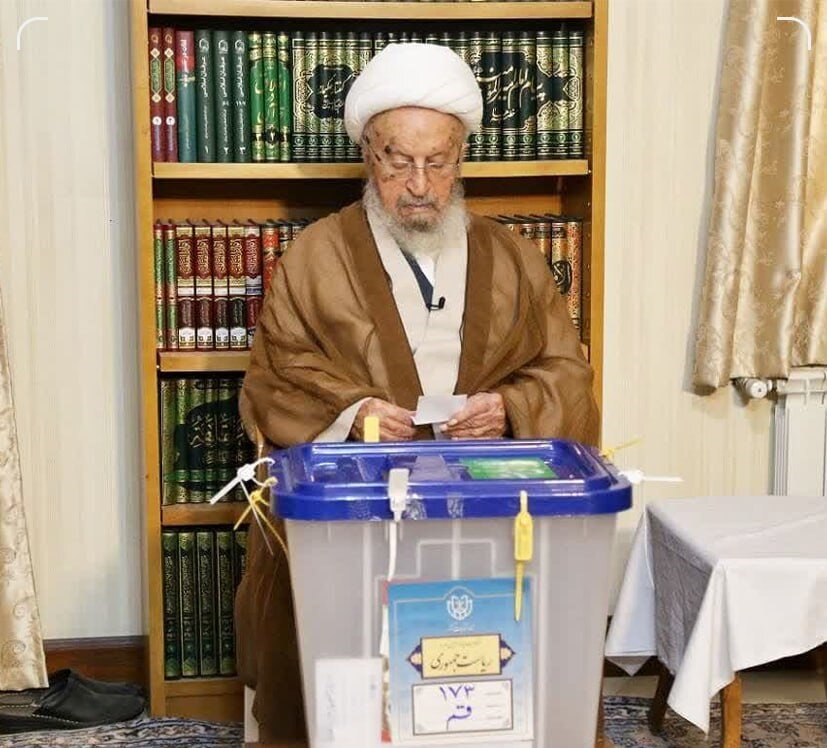 آیتالله مکارم شیرازی مرجع تقلید شیعیان رای خود را در انتخابات ریاستجمهوری به صندوق انداخت.