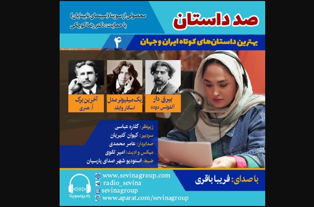 به گزارش ایسنا به نقل از روابط عمومی سوینا، چهارمین قسمت از «صد داستان» به روایت داستانهای «بیرق دار» نوشته آلفونس دوده، «یک میلیونر مدل» اثر اسکار وایلد و «آخرین برگ» نوشته اُ.هنری اختصاص دارد.