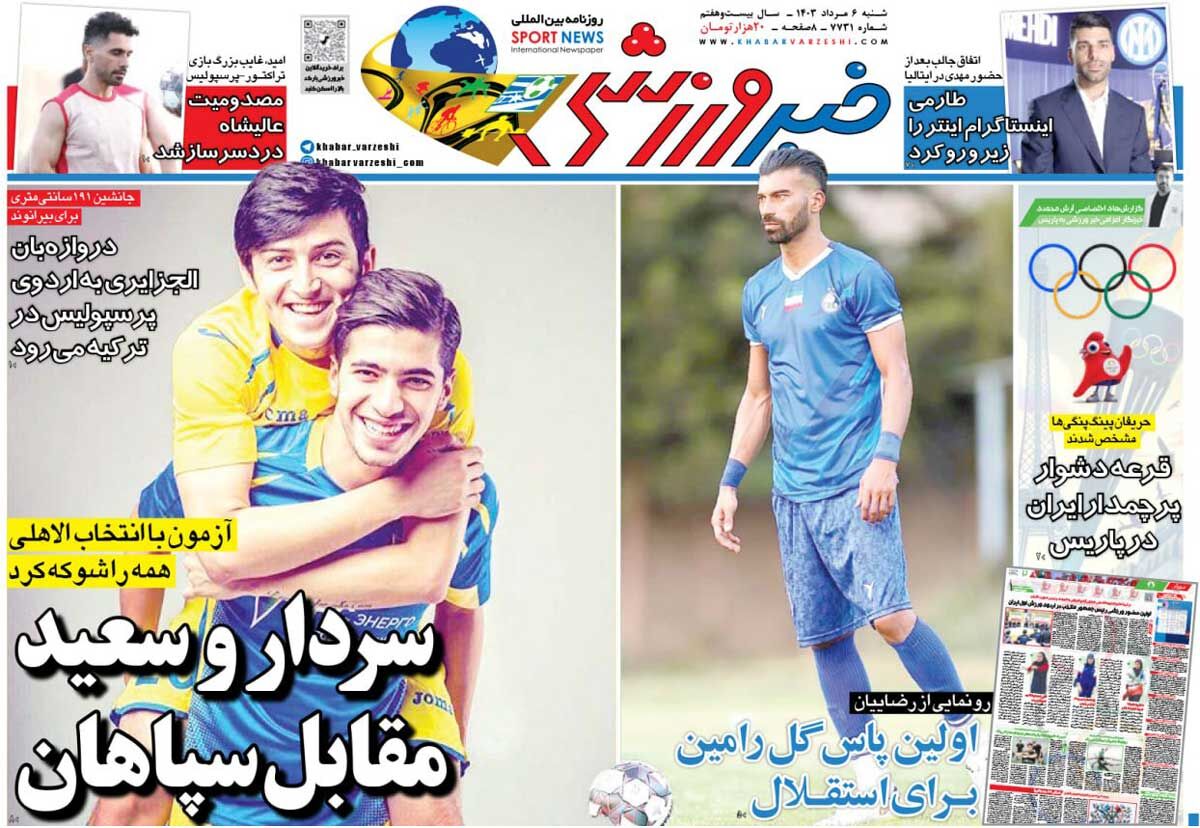 شنبه ۶ مرداد ۱۴۰۳ در شماره ۷۷۳۱ اروزنامه خبرورزشی، می توانید این مطالب را بخوانید: