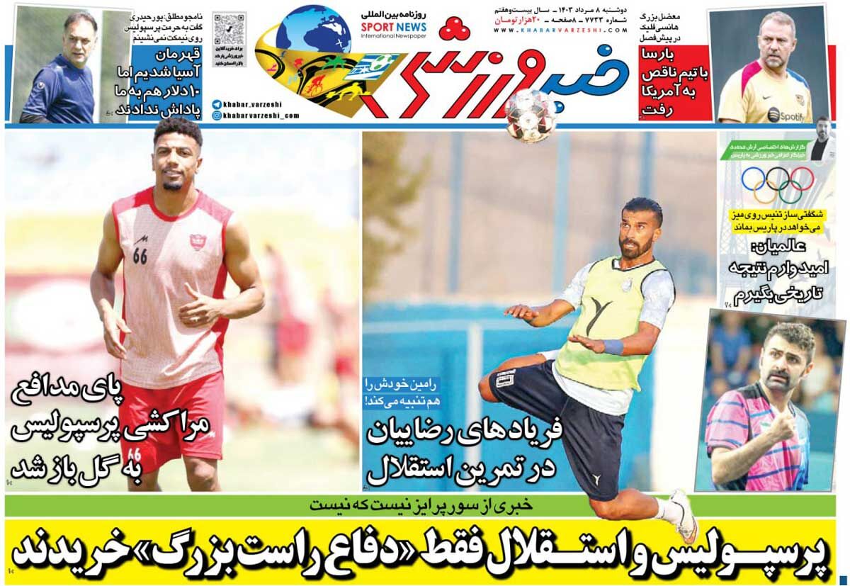 روزنامه خبرورزشی هنوز جایگاه خود روی کیوسک و در دل هواداران ورزش حفظ کرده است. دوشنبه ۸ مرداد ۱۴۰۳ در شماره ۷۷۳۳ این روزنامه می توانید این مطالب را بخوانید: