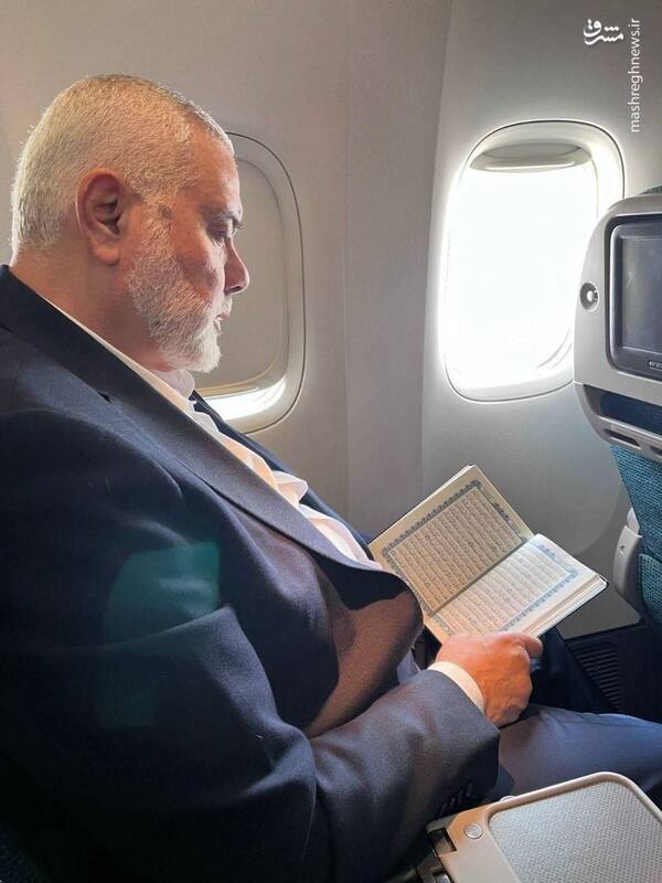 تصویری در شبکههای مجازی منتشر شده است که اسماعیل هنیه را در آخرین پرواز وی در حال قرائت قرآن مجید نشان میدهد.