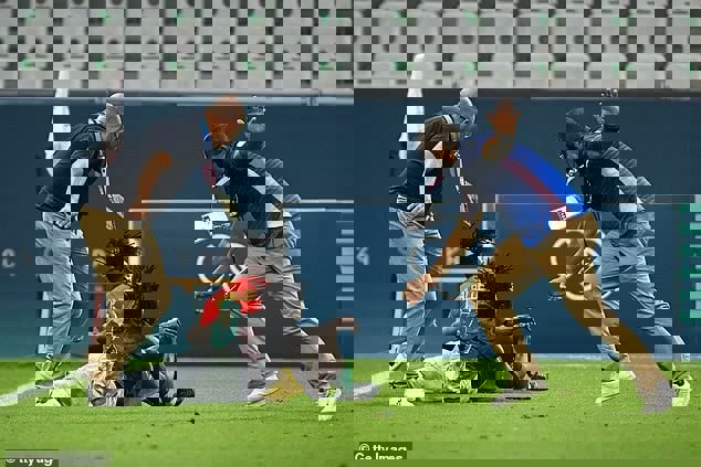 تصویری که در شبکههای اجتماعی منتشر شده، لحظه دستگیری این فرد را در فاصله بسیار کمی از خط شروع نشان میدهد.