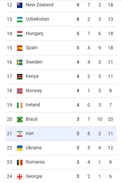 به گزارش ایسنا، در شانزدهمین و آخرین روز از سیوسومین دوره بازیهای المپیک ۲۰۲۴ پاریس، ایران با سه مدال طلا، شش نقره و سه برنز در رده بیست و یکم قرار دارد.
