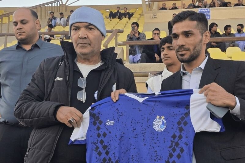 قهرمان سابق سنگین وزن جهان و المپیک که با تیپی اسپورت در مراسم حاضر شده بود، در کنار منصور برزگر نشسته بود که مراسم امروز به نام او نامگذاری شده بود.