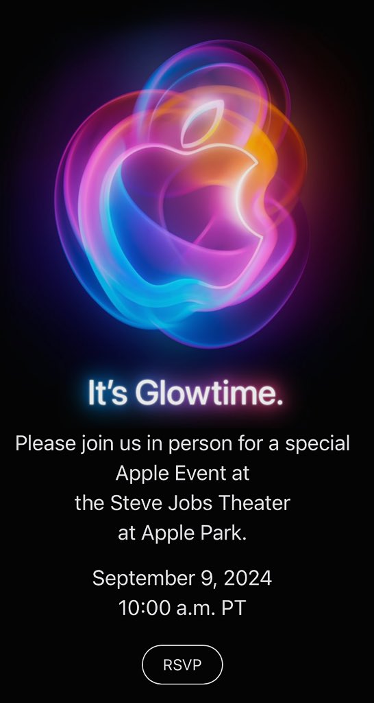 اپل با انتشار دعوتنامهای با شعار «It's Glowtime»، رسماً از برگزاری رویداد بعدیاش در تاریخ ۱۹ شهریورماه (۹ سپتامبر) خبر داد.