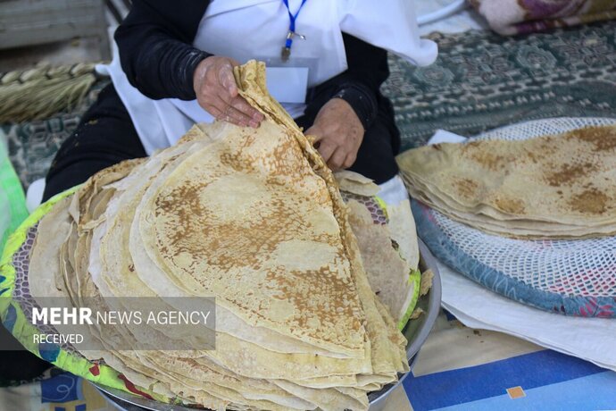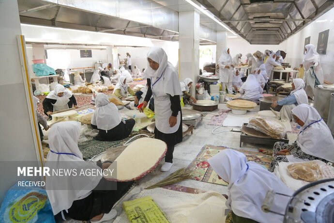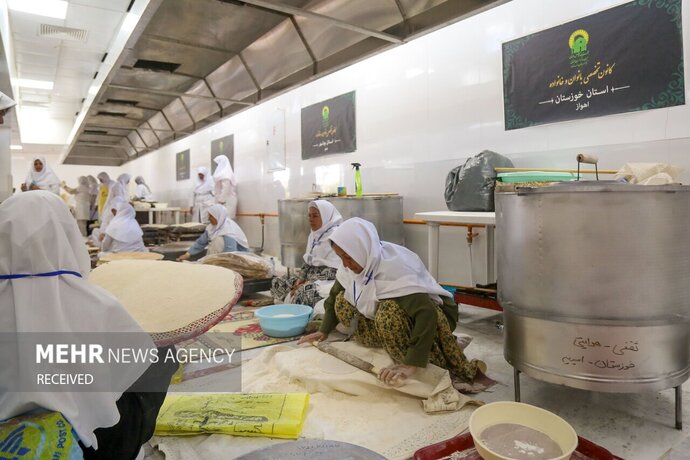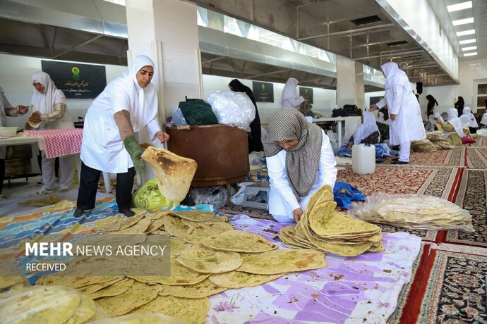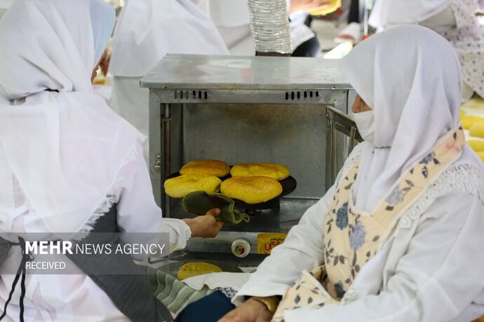 به مناسبت ایام عزاداری دهه آخر صفر ۳۰۰ بانوی خدمتگذار از ۱۳ استان کشور روزانه حدود ۲۰ هزار قرص نان به جهت استفاده مواکب و عزاداران اهل بیت (علیهم السلام) در خراسان رضوی پخت میکنند.