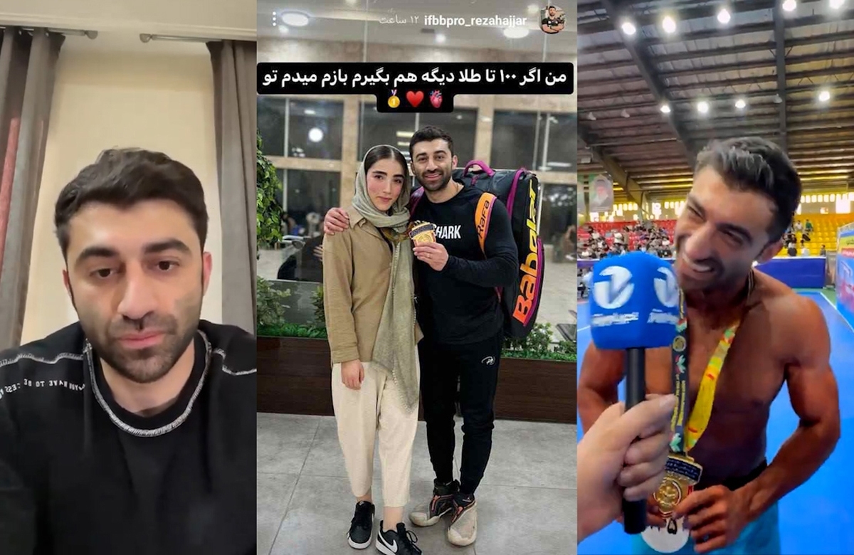 رضا حجار، قهرمان بدنسازی در ایران، که روز یکشنبه ۱۱ شهریور خبر داده بود پس از تقدیم مدال طلای مسابقات انتخابی به دوست دخترش از تیم ملی الف بدنسازی خط خورده و سپس با انتشار یک استوری خطاب به دوست دخترش گفت اگر صد تا مدال هم بگیرم به تو تقدیم میکند اما حالا با انتشار ویدیویی بابت استفاده از کلمه «دوست دختر» عذرخواهی کرده است. هر سه واکنش این بدنساز ایرانی را میبینید و میشنوید.