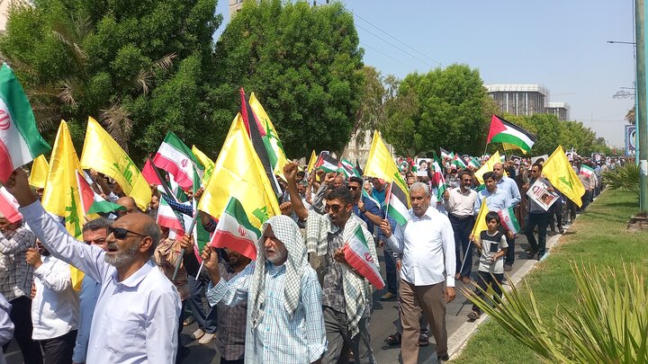 بندرعباس- در اولین جمعه از ماه ربیع الاول مردم بنادر بعد از اقامه نماز عبادی و سیاسی جمعه به خیابان آمدند تا ضمن اعلام انزجار از جنایات صهیونیستها از مردم فلسطین حمایت کنند.