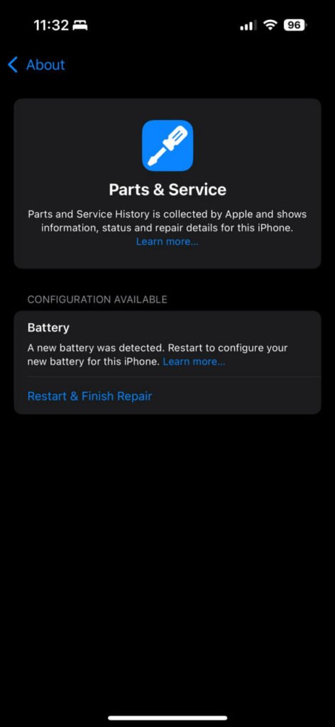 پس از نصب iOS 18، اطلاعات مربوط به این ویژگی در قسمت Parts and Service بخش About تنظیمات نمایش داده میشود. البته این بخش برای کاربرانی که دستگاه خود را تعمیر نکردهاند نمایش داده نمیشود.