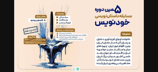 بر اساس این گزارش نشرسرای خودنویس فراخوان پنجمین دوه مسابقه خود را در ۳۰ تیر ۱۴۰۳ در محورهای خانواده، ازدواج، فرزندآوری، دختران و پسران آتیهساز، اقوام غیور ایران، چهرههای مبارز و استکبارستیز، مواجهۀ ایران با قدرتهای جهان، رشد علمی کشور، مردان بزرگ ایرانزمین، سنتهای خوب ماندگار، مشاهیر ادبی و هنری، ایران آینده و در بخش ویژه، فلسطین و غزه اعلام کرده بود. شرکتکنندگان فرصت داشتند تا ۷ شهریور، آثار خود را ارسال کنند.
