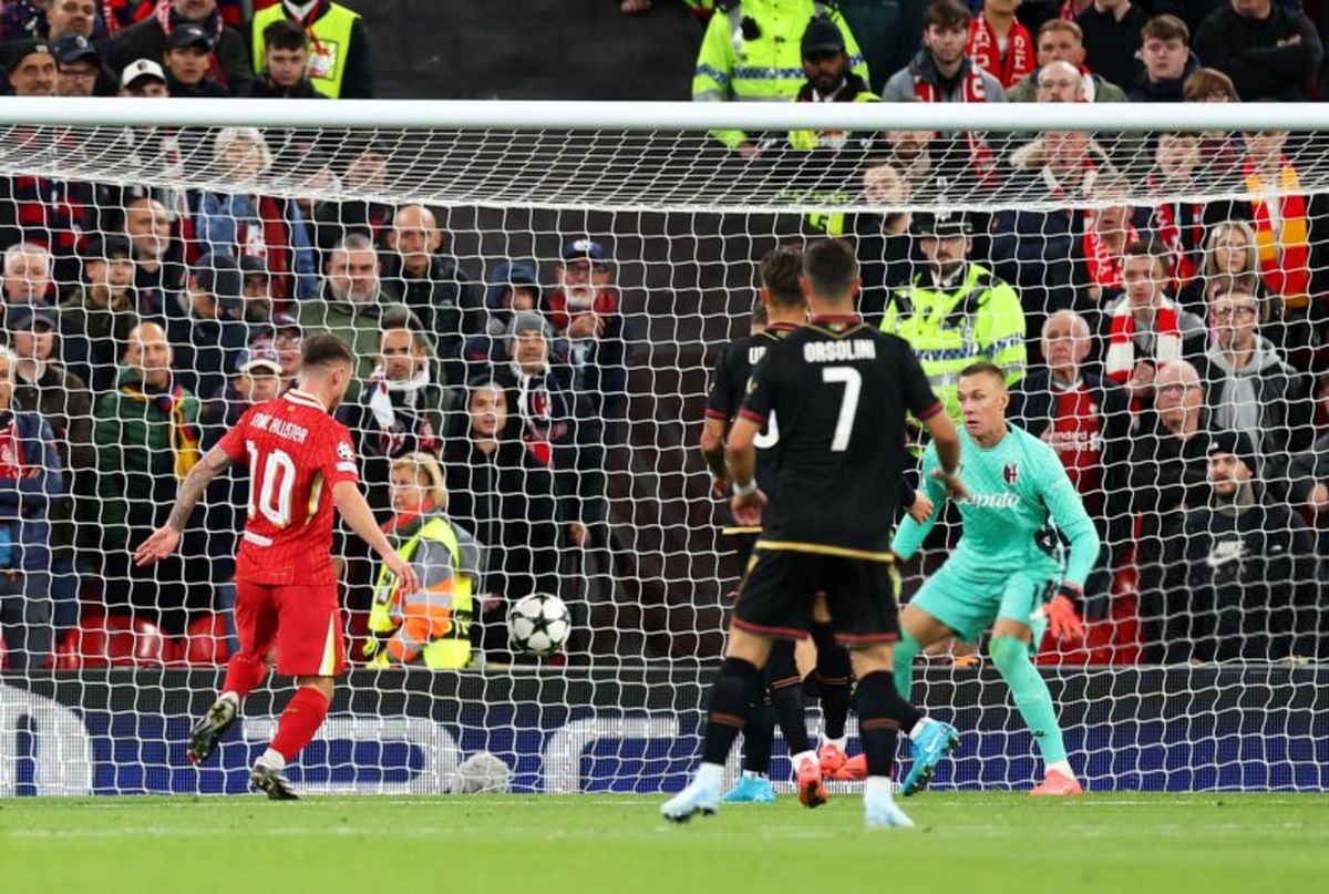 پاسکاری ترکیبی زیبای بازیکنان لیورپول در نزدیکی محوطه جریمه بولونیا، با ارسال بلند محمد صلاح به دهانه دروازه حریف همراه شد و مک آلیستر با حضور به موقع در شش قدم بولونیا و با ضربه پای چپ در یازدهمین دقیقه بازی حساب کار را ۱-۰ کرد.