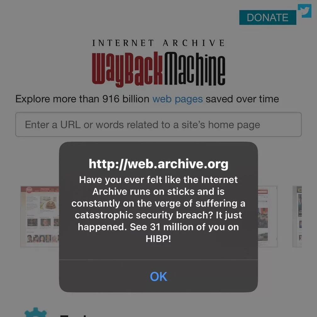 «آیا تابهحال احساس کردهاید که آرشیو اینترنت دائماً در آستانه یک نقض امنیتی فاجعهبار است؟ این اتفاق افتاده است. 31 میلیون نفر از شما را در HIBP میبینیم!»