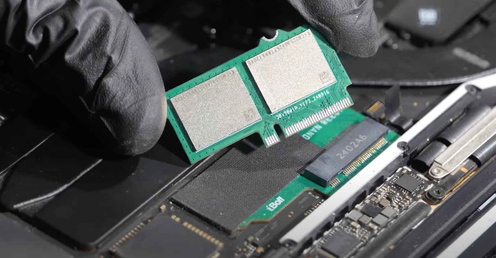 این یوتوبر فرایند طراحی، توسعه و نصب اسلات SSD را نشان نداد اما روند حذف ماژولهای SSD و تعویض آن با یک درایو با ظرفیت بالاتر را نمایش داده است.