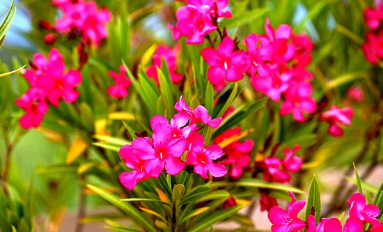برای نام بردن یک گل و گیاه زمستانی دیگر میتوان گل خرزهره را نام برد که همیشه رنگ سبز دارد و مقاومت بسیار زیادی در مقابل سرما دارد. ارتفاع این گل تا بیش از 2 متر هم میرسد. خرزهره برگهای کشیدهایی دارد اما سمی است و گلهای بد بویی دارد. به این دلیل تکثیر راحت و همچنین رنگهای متنوع، این گل در محوطه و دکوراسیون استفاده زیادی دارد.