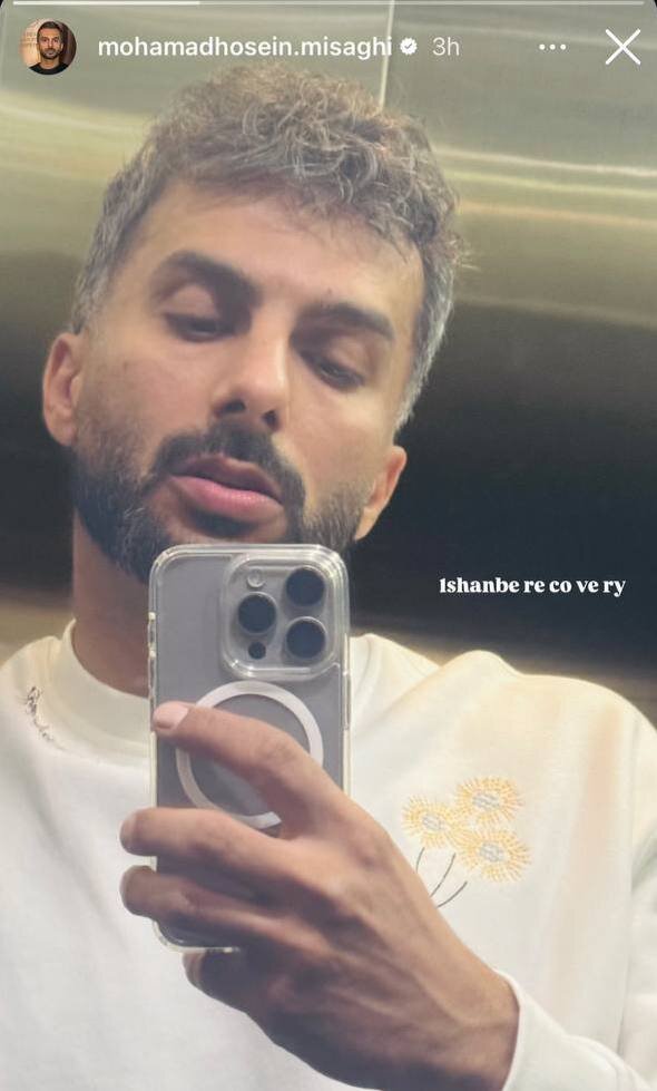 محمد حسین میثاقی ساعاتی قبل تصویری از خود مقابل آینه آسانسور در صفحه شخصی اش منتشر کرد.