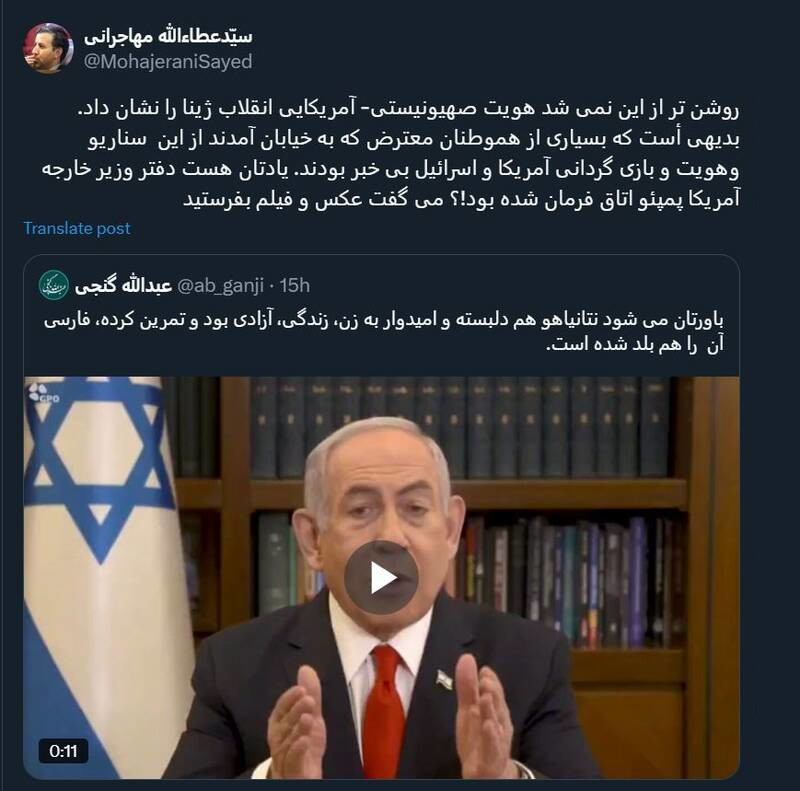 عیانشدن ماهیت انقلاب ژینا توسط نتانیاهو